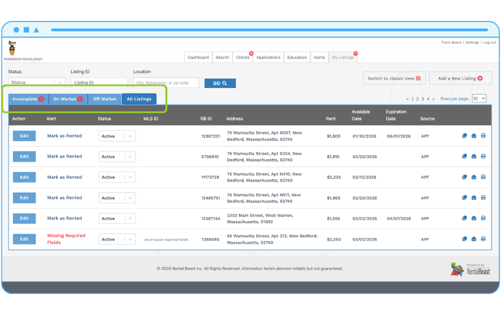 At Rental Beast, we’re always looking for ways to make managing your rental properties easier, faster, and more efficient. That’s why we’re excited to introduce the powerful evolution of the My Listings tab into a centralized command center for property managers and investors: the Rental Expert Dashboard. The new dashboard offers improved clarity, faster action, and a more efficient workflow for managing rental listings at scale, helping reduce errors, keep listings compliant, and ensure accurate rental data reaches the MLS quickly.
